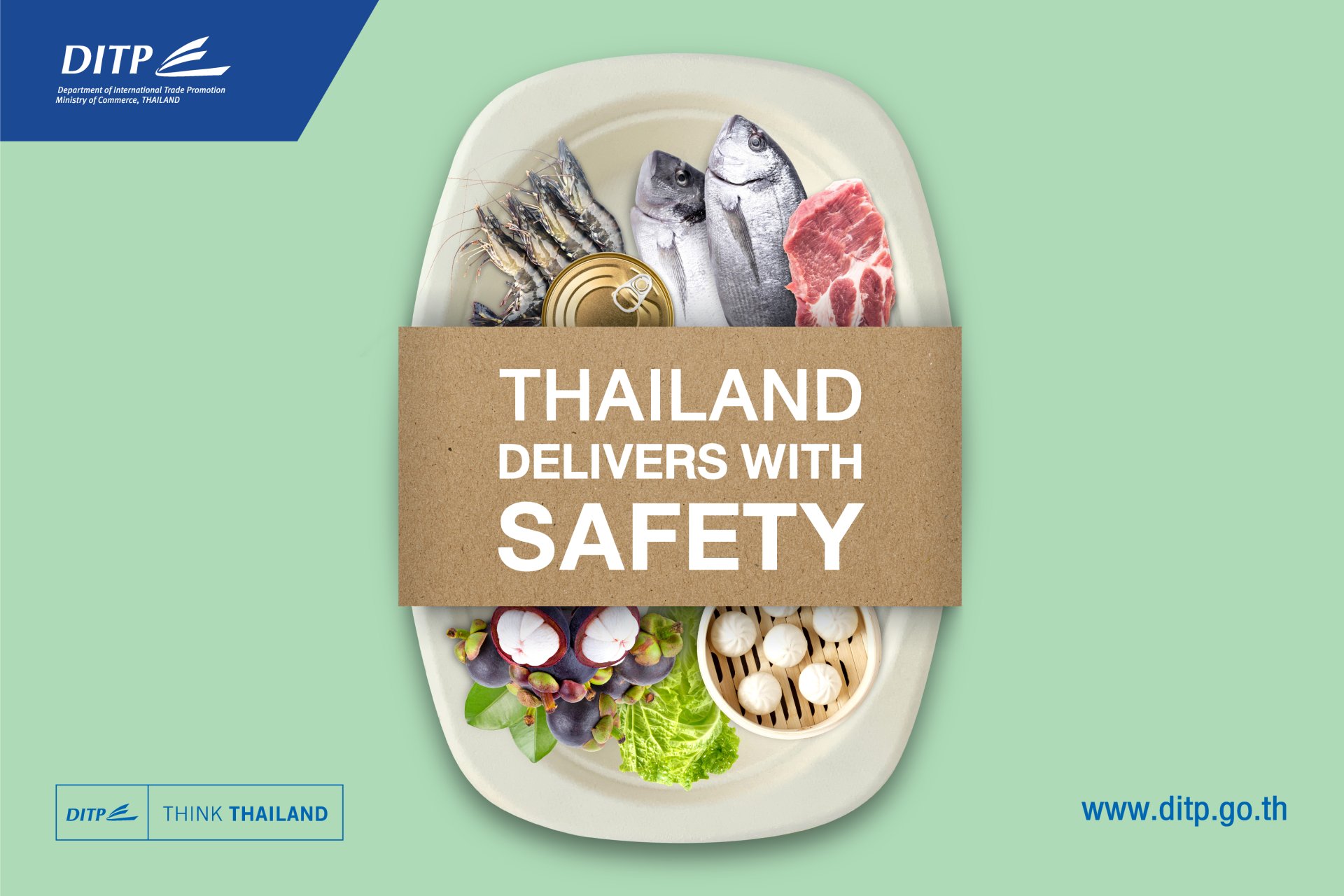 THAILAND DELIVERS WITH SAFETY, the campaign to boost confidence in Thai agricultural produce and food products under COVID - 19 Prevention Best Practice process.